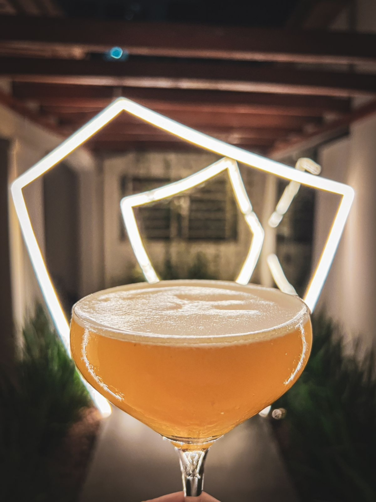 GIN, LICOR 43, CLARA DE OVO, MARACUJÁ E RASPAS DE LIMÃO.