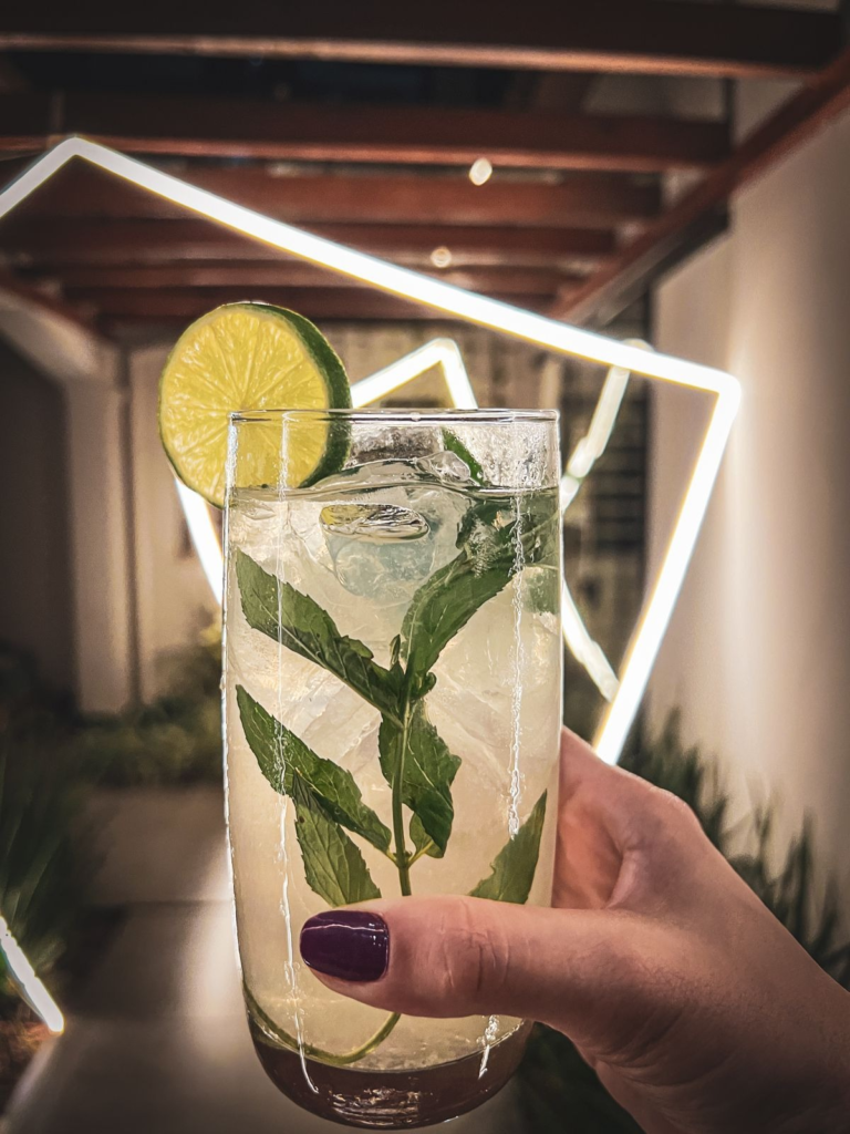 Hortelã, Rum, Xarope simples, Suco de limão e Água com gás