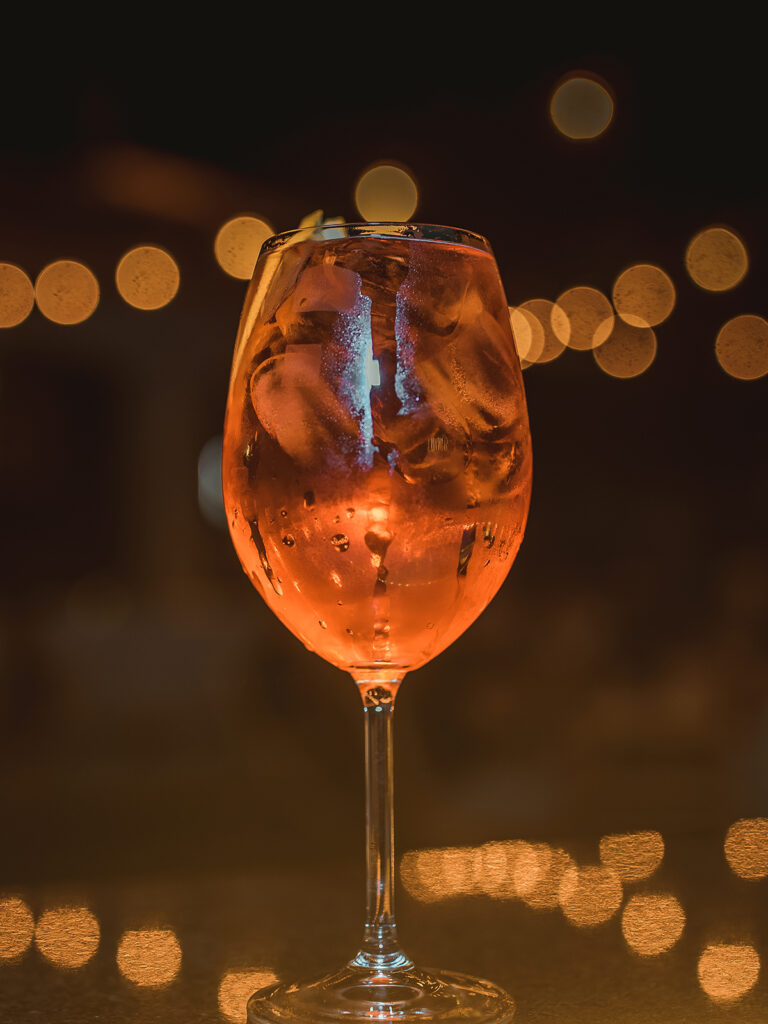 Aperol. Gin. Xarope simples e Suco de abacaxi